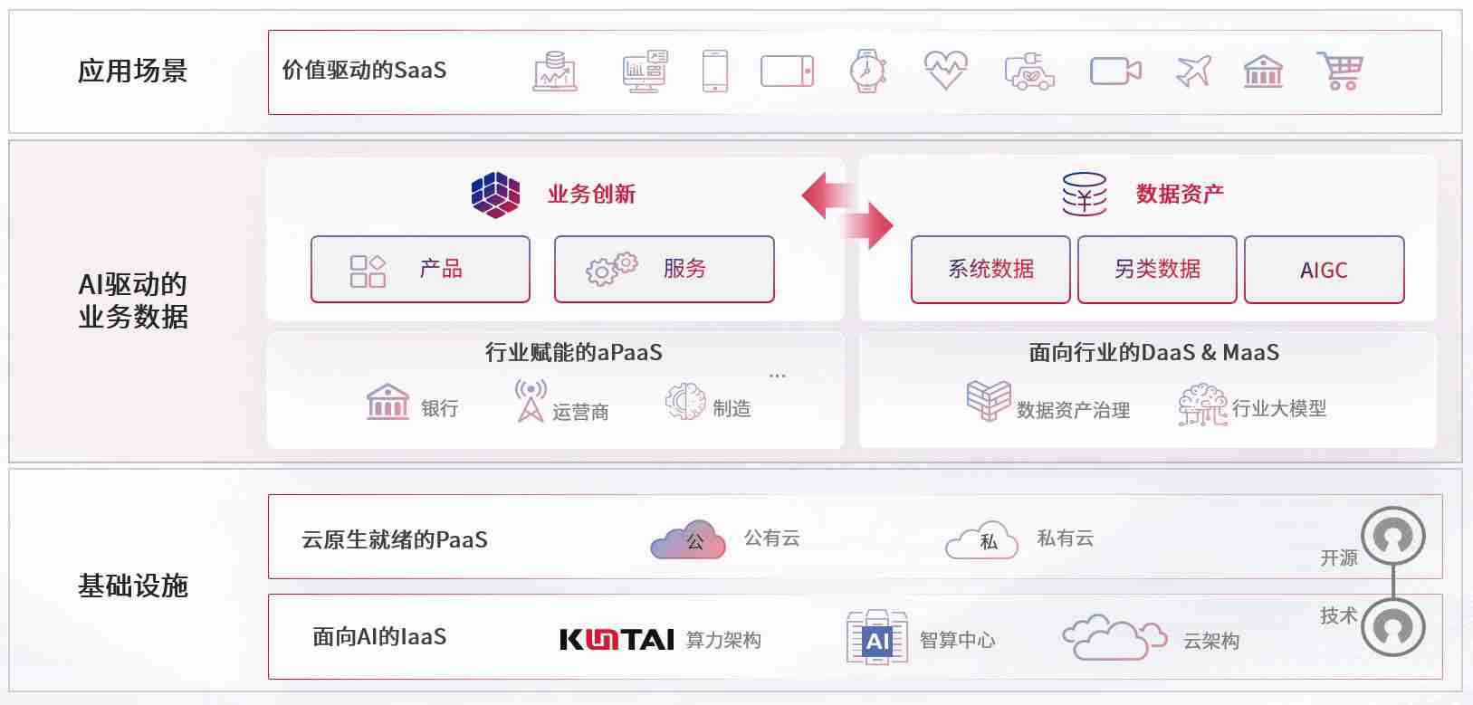 数字时代,,围绕企业数字化转型的关键要素,,德州竞技联盟数码开创性的提出数云融合战略和技术体系框架,,,着力在云原生、、、数字原生、、AI原生和信创产业上架构产品和服务能力,,为处在不同数字化转型阶段的快消零售、、汽车、、、、金融、、、、医疗、、、政企、、教育、、运营商等行业客户提供泛在的敏捷IT能力和融合的数据驱动能力,,,构建跨界融合创新的数字业务场景和新业务模式,,,,助力企业级客户建立面向未来的核心能力和竞争优势,,全面推动社会的数字化、、、、智能化转型升级。。。